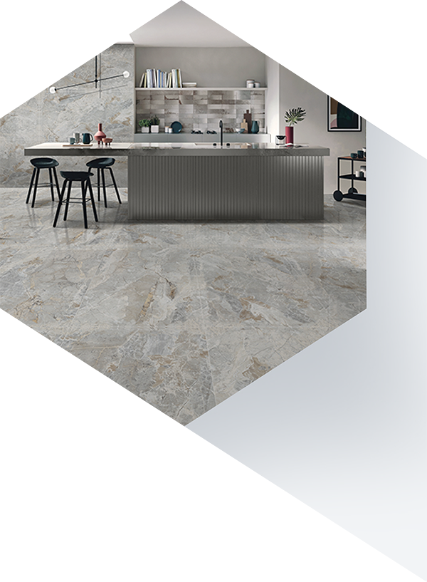 Kitchens demand tiles that with stand moisture,heat,and frequent cleaning.Floor tiles must offer stability and wear resistance,while wall tiles support hygiene and ease of maintenance.Visual continuity with adjoining living spaces is often achieved through consistent palettes and finishes,enhancing the overall aesthetic and functionality of the space.